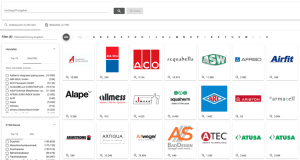 In der Deep Search sind Branchenstandards wie ETIM technologisch integriert.