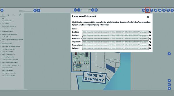 Der PDF Viewer stellt die Vermarktungsdokumente optimal dar und bietet eine Vielzahl von Funktionen wie z. B. Inhaltsverzeichnisse, Clipping oder auch Drucken. Alle Funktionen die auf Open Datacheck integriert sind, stehen immer in Ihren eigenen Bibliotheken zur Verfügung. Eine Übersicht über alle Funktionen und Möglichkeiten von Bibliotheken finden Sie in der DG Haustechnik Knowledge Base.