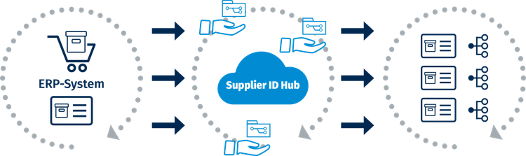 Bei Plattformen mit einer Vielzahl von Lieferanten ist die eindeutige Identifikation von Artikeln nur über die Kombination aus Lieferanten-ID und Werksartikelnummer möglich. Der Supplier ID Hub ordnet die eigene Lieferanten-ID denen anderer Produktdatenplattformen zu. Dadurch wird beispielsweise beim Einsatz von Open Masterdata immer der richtige Artikel gefunden.